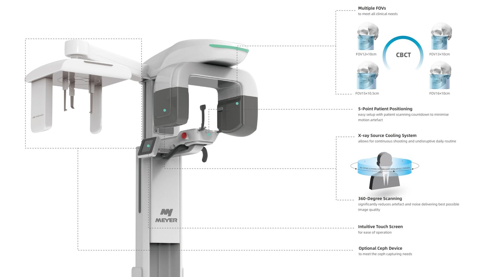CephEffortlessly obtain high grayscale, high-resolution cranial standard/lateral images. |
