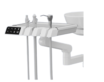 Bandeja do assistente com múltiplas articulações, equipada com cânula de aspiração cirúrgica 16 mm e cânula de aspiração de saliva 11mm.