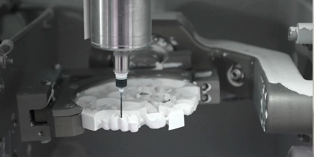 A ligação de 5 eixos pode garantir o efeito de processamento e garantir precisão ultra-alta ao fresar várias restaurações. Além disso, não há interferência de fatores artificiais em todo o processo de processamento, o que pode garantir ao máximo a consistência das capacidades de processamento do equipamento e obter excelentes efeitos de fresagem.